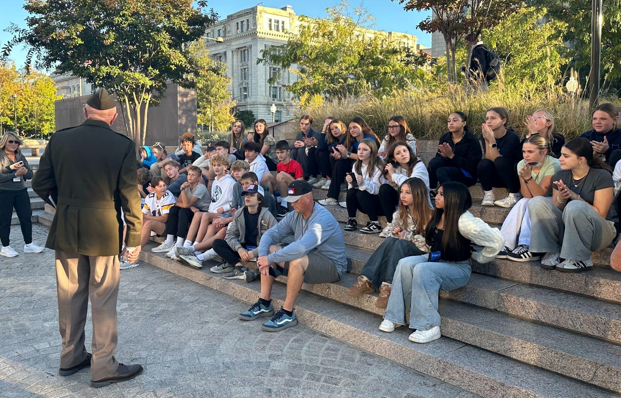 Since the 1980’s Prior Lake-Savage Area Schools, which is located in Minnesota, has been bringing groups of 8th graders to Washington D.C. in the fall. For the past two years, the group has visited the National World War I Memorial at Pershing Park.