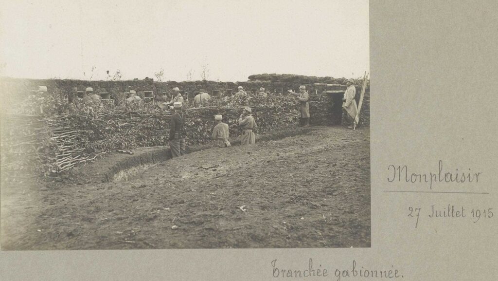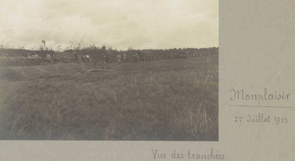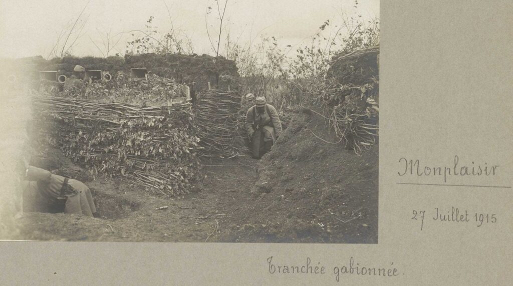 Montplaisir Ferme (farm) was a fortified position in the line of defense between Ville-sur-Tourbe and Bois d’Hauzy. Group Combat (GC) Post 29 lay a few hundred feet east of the farm on the road leading between Ville-sur-Turbe and the small community of Malmy, which borders the Bois d’Hauzy. The area witnessed very heavy combat in 1915, but by the spring of 1918, it was a quiet sector.