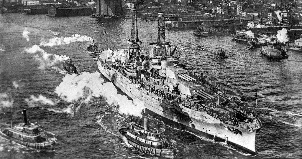 The USS Arizona in New York Harbor in 1916. A single WWI-era battleship required 8,000–12,000 tons of steel and roughly 200 tons of copper wire.
