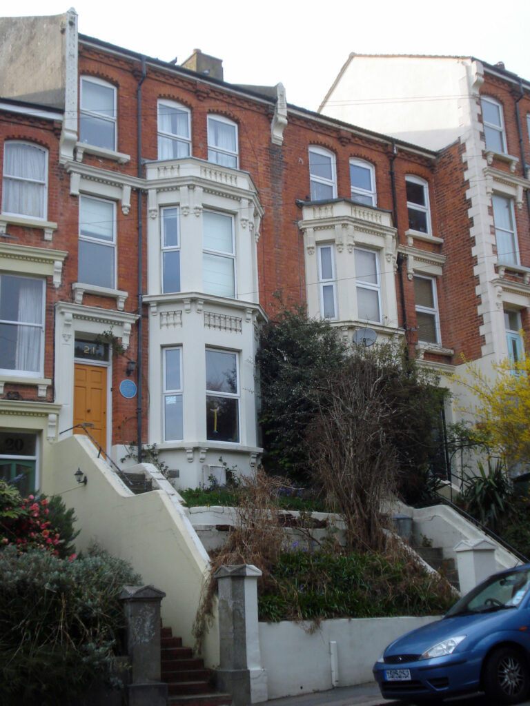Baird might never have made it to London had he not been a sickly boy. When WW1 broke out he wanted to enlist but was refused due to ill health, so took a job with the Clyde Valley Electrical Power Company helping to make munitions instead. In 1923 he moved to the south coast for the good of his health because it had a warmer climate, renting rooms at 21 Linton Crescent in Hastings. Here the first television signal transmitting equipment was constructed, with component parts including a hatbox, tea chest, darning needles and bicycle light lenses. The first image to be transmitted was the shadow of a St Johns Ambulance medal with a distinctive spiky outline, an item still on display at Hastings Museum. But his tinkering proved dangerous, and although a 1000-volt electric shock thankfully resulted in nothing worse than a burnt hand, his landlord duly asked him to vacate the premises.