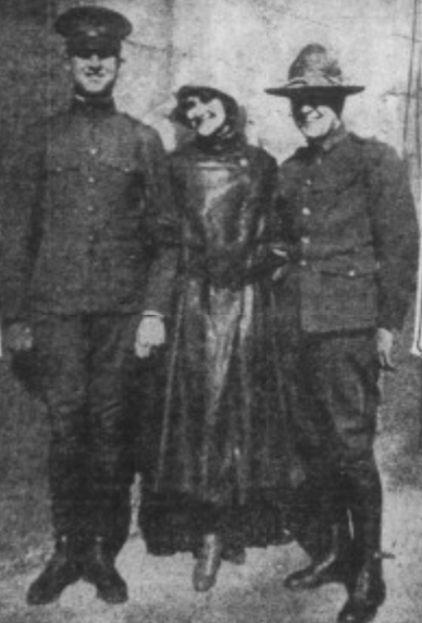 Ruth Charlotte Bush, center, with her future husband, Don Weber (left), and an Indiana friend, James Keenan (Indianapolis News, 11 May 1918)