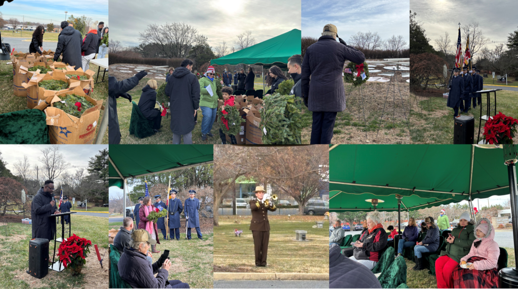 My first experience with Wreaths Across America came through my DAR chapter at the Wren-Darne Cemetery which is a small, privately owned historical family cemetery in Falls Church, VA containing veterans from the Revolutionary War and the War of 1812. The Wren Darne Cemetery – Historic Places, Cemetery, Landmark The owner, Pete Greene, shared the remarkable story of discovering the cemetery, its history, and his dedicated efforts to restore it. Participating in that intimate ceremony with my DAR chapter, hearing Pete’s stories, and learning about the WAA program from our chapter’s cemetery representative opened my eyes to something powerful: a structured, well-organized way to honor veterans that anyone could implement.